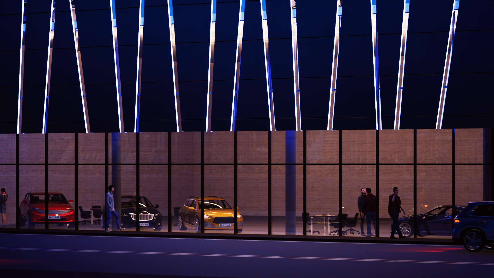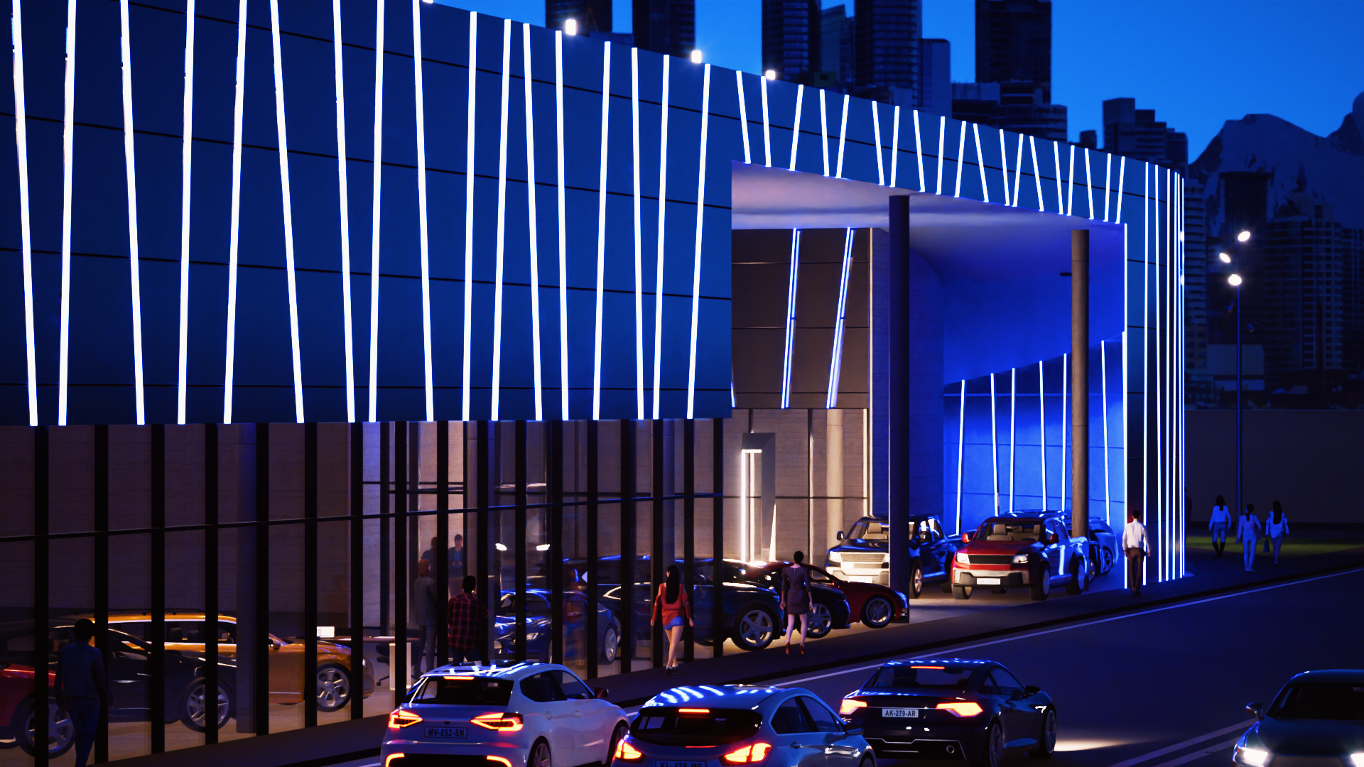 In December 2021, the Car Dealership project in Chiryu, Japan, took the spotlight with its striking exterior design focused on the facade. The key feature of the design is a sleek metallic facade adorned with captivating lines of blue LED lights. The metallic facade exudes a modern and sophisticated aesthetic, setting the dealership apart in the automotive landscape. The use of clean lines and a metallic finish not only enhances the visual appeal but also communicates a sense of innovation and precision associated with the automotive industry. This project successfully marries functionality with aesthetics, creating a memorable and eye-catching exterior that reflects the progressive nature of the automotive industry in Chiryu, Japan.