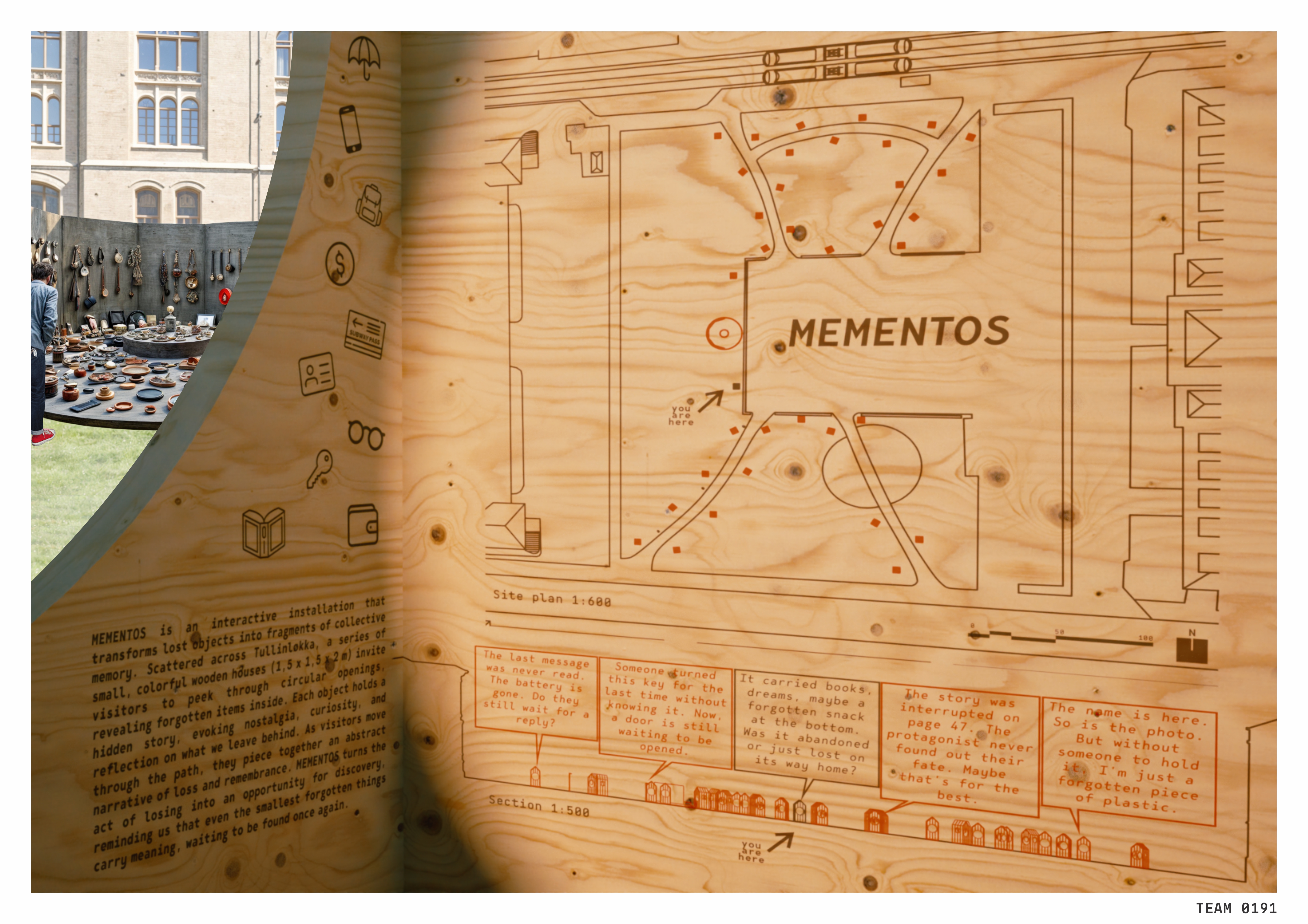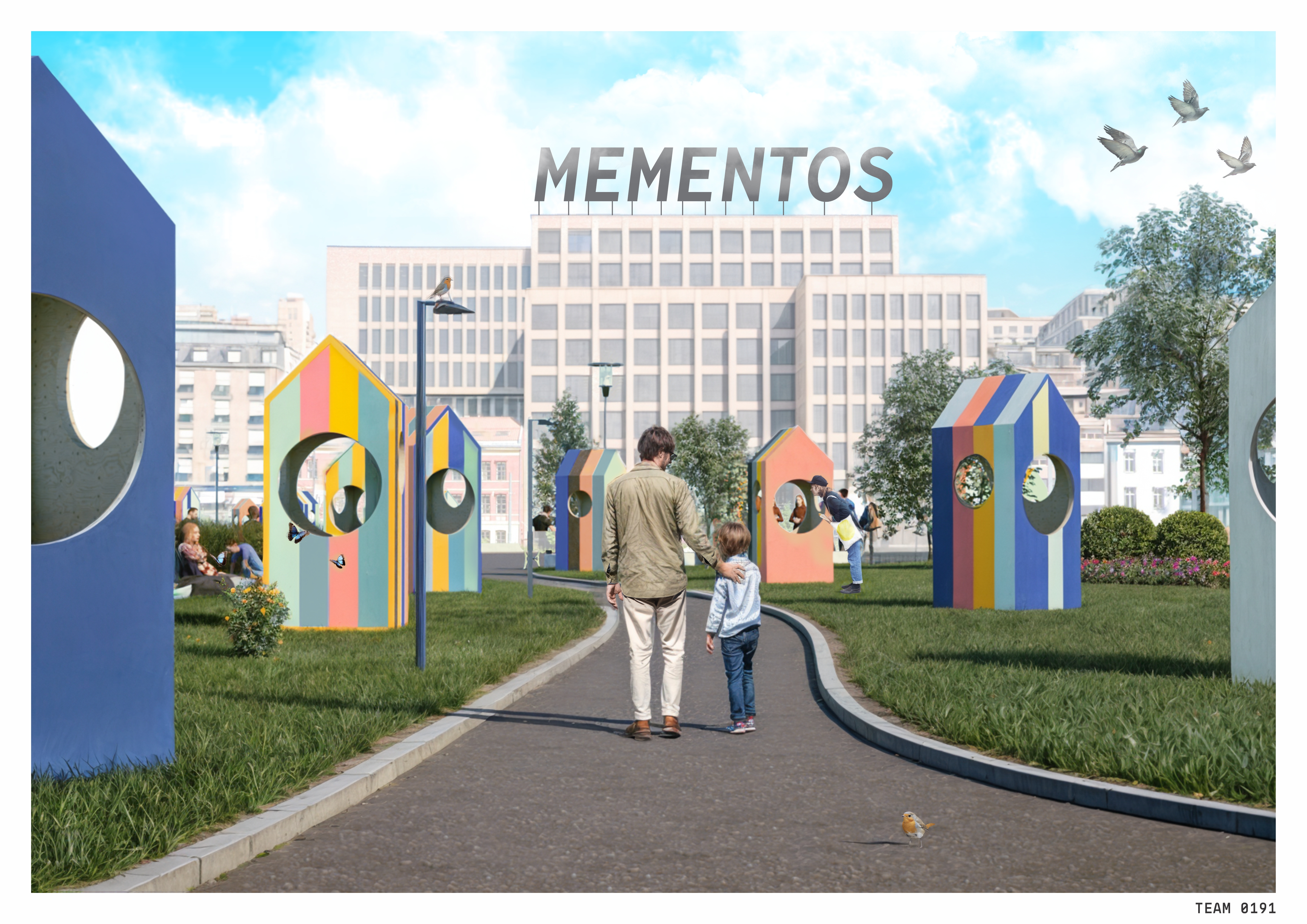 MEMENTOS is an interactive installation proposal for 120 Hours Competition 2025 that transforms lost objects into fragments of collective memory. Scattered across Tullinløkka, a series of small, colorful wooden houses (1,5 x 1,5 x 2 m) invite visitors to peek through circular openings, revealing forgotten items inside. Each object holds a hidden story, evoking nostalgia, curiosity, and reflection on what we leave behind. As visitors move through the path, they piece together an abstract narrative of loss and remembrance. MEMENTOS turns the act of losing into an opportunity for discovery, reminding us that even the smallest forgotten things carry meaning, waiting to be found once again.