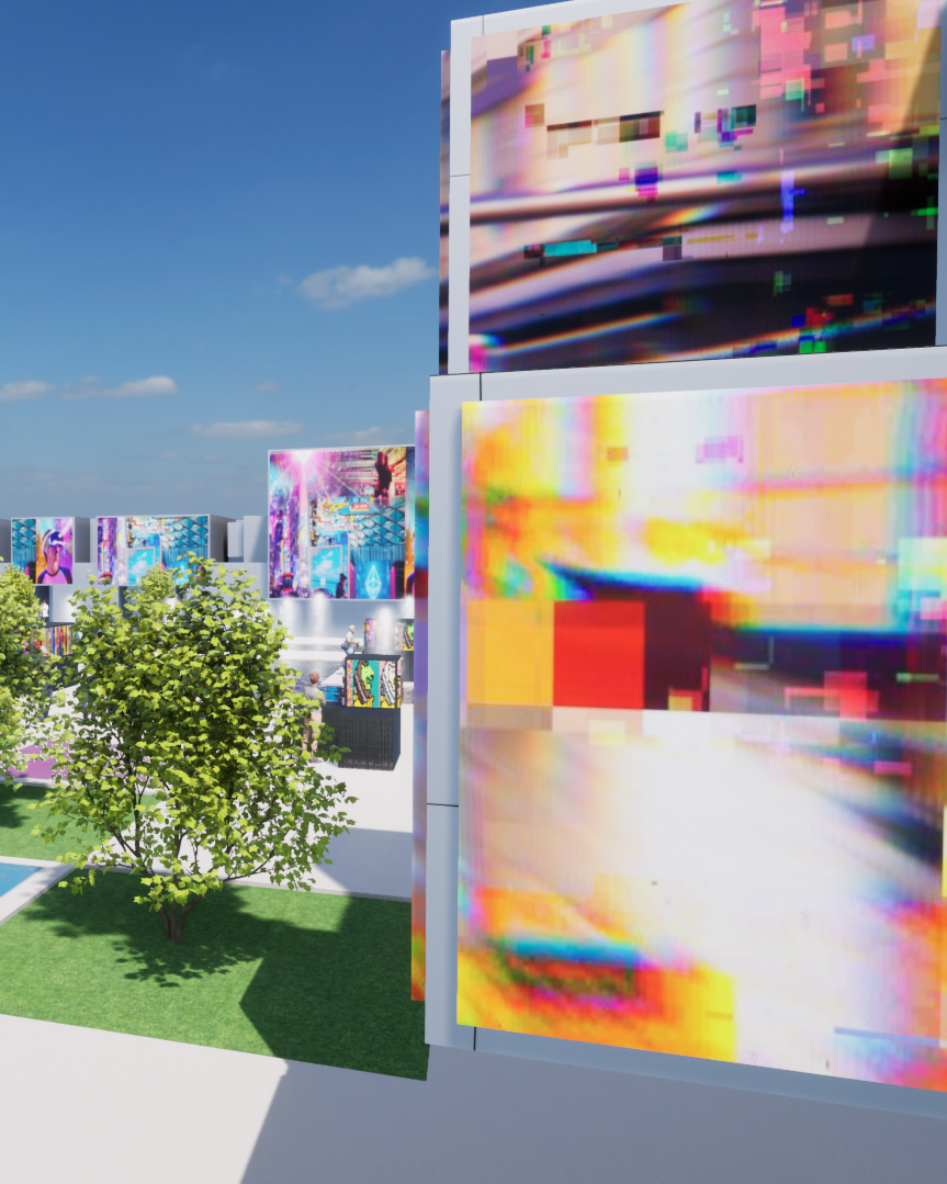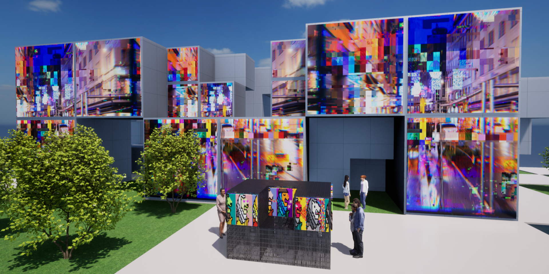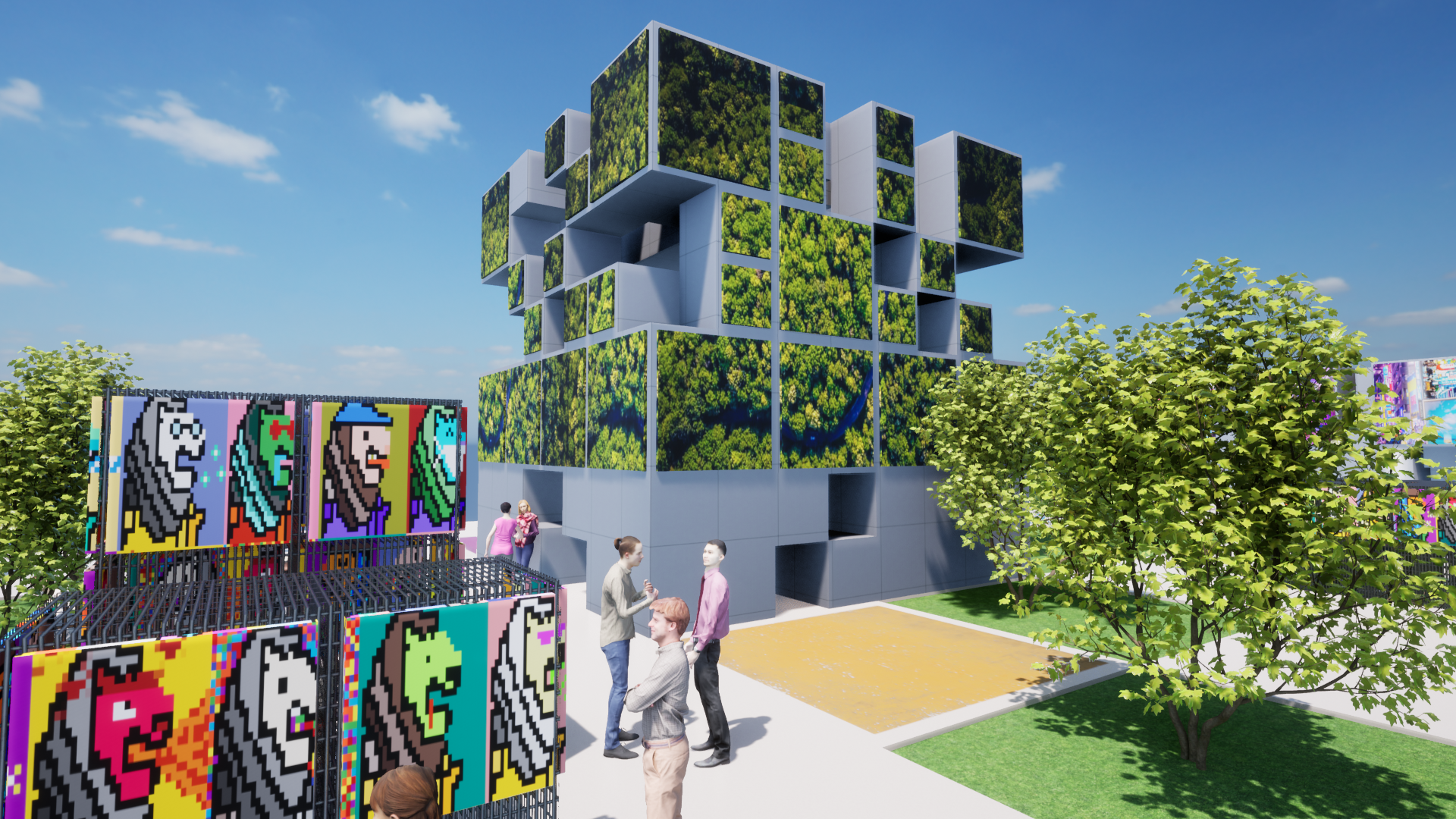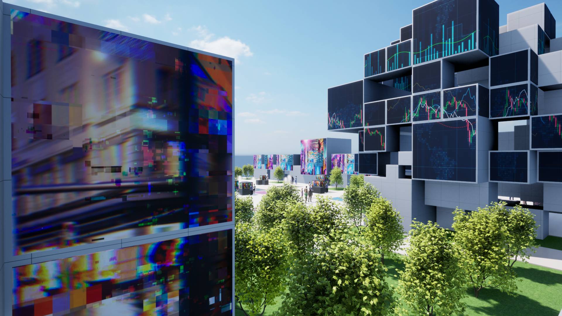 Pixel is the smallest point that forms a digital image, and a set of pixels with various colors form the entire image. Based on this concept, Pixelland is a digital art complex formed by several pixels through parametric architecture. In an area of approximately 54,000 ft² of virtual floor space we can find a Crypto market, Defi indoor expo, NFT indoor expo, Dapps Pavilion and City plaza which NFT & DeFi are displayed by small modules scattered around the land.